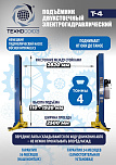г/п. - 4 т. Для подъема легковых автомобилей всех моделей и марок при их техническом обслуживании и ремонте. Максимальное расстояние между подхватами: 2550 мм. Высота подъема лап (с подхватами): 1800 (1990) мм Длина задних лап: 780-1200 мм. Длина передних лап: 780-1200 мм. Толщина металла в стойках - 5,2 мм, толщина тросов синхронизации - 9 мм. Вес: 630 кг.