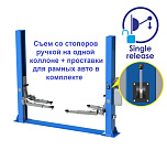 Гарантия до 36 мес. Усиленная конструкция подъемных кареток. Срок эксплуатации подъемника – не ограничен. Поднимает ВСЁ – от «Оки» до «LC200» Съем со стопоров ручкой на одной колонне (экономия времени). В комплекте проставки для рамных авто. Ширина проезда – 2560 мм. Высота подъёма h=110÷1825 мм. 220/380В. г/п 4 тонны.
