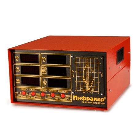 Автомобильный 5-ти компонентный газоанализатор «Инфракар 5М-3.01 предназначен для измерения объемной доли оксида углерода (СО), углеводородов (CН) (в пересчете на гексан), диоксида углерода (СО2), кислорода (О2), окислы азота(NOx) в отработавших газах автомобилей с бензиновыми двигателями. Лямбда + Тахометр + RS-232 + Автослив конденсата + Автоподстройка нуля + Работа с ЛТК и мотортестерами. Внесен в Госреестре средств измерений РФ, Республики Беларусь и Казахстан.