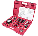 Для определения состояния деталей цилиндро-поршневой группы дизельных двигателей грузовых автомобилей. Измерение компрессии может проводиться через свечные отверстия свечей накаливания или через установочные отверстия форсунок. Комплектуется 15-ю адаптерами с различными резьбами, механическим манометром, диаметром 63 мм. Все адаптеры (15 шт.) имеют клапана для уменьшения погрешности производимых измерений.