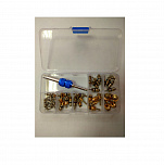 Ремкомплект для сервисных портов Шредера. В комплект входит сервисный ключ, ниппеля R-134 6 типоразмеров. Поставляется в пластиковом футляре. Производитель: Тайвань
