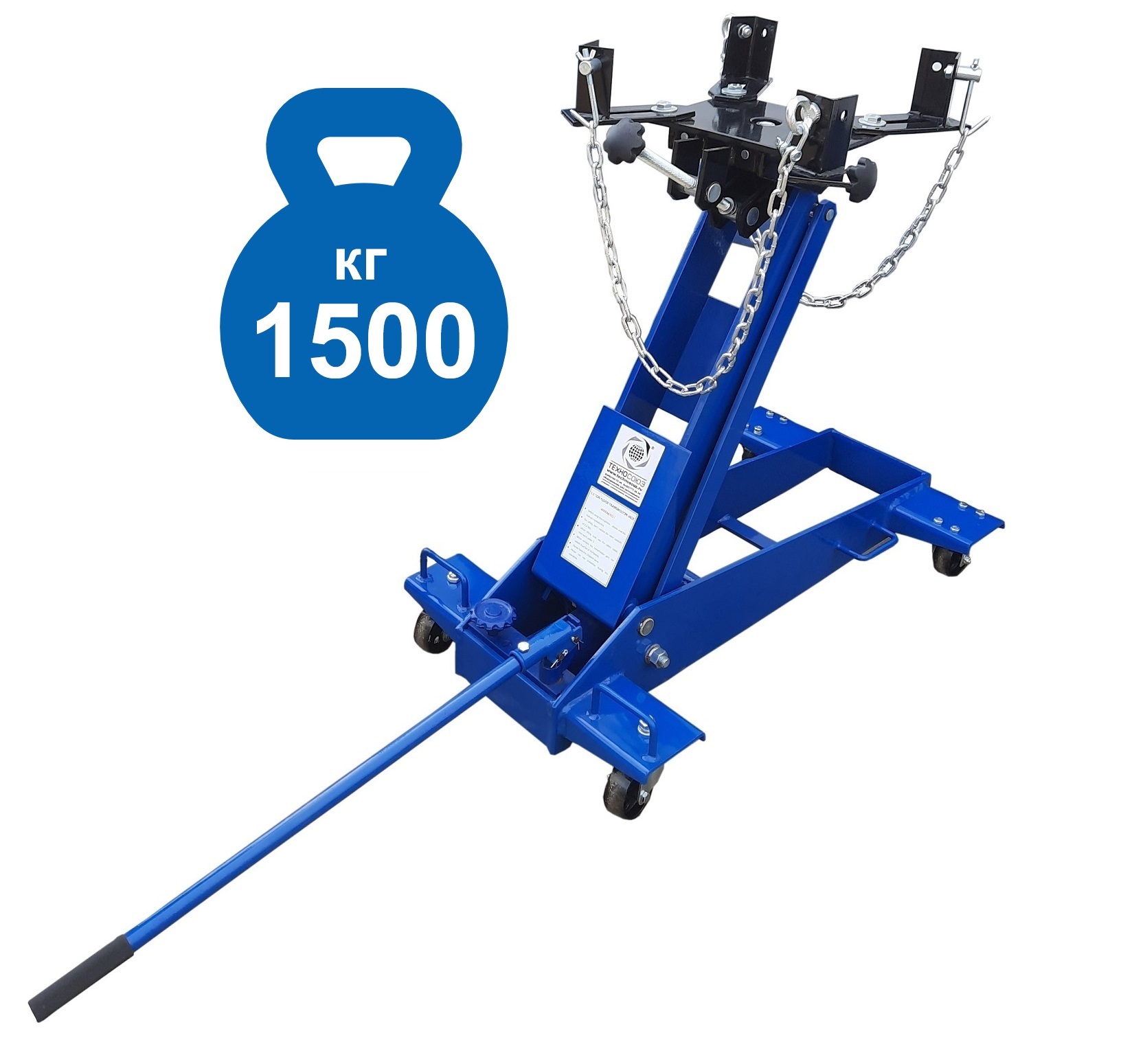 Домкрат трансмиссионный для снятия/установки ОСОБО ТЯЖЕЛЫХ АГРЕГАТОВ (КПП, мостов и т.п.) г/п 1 т. Подъем 230-760 мм. Устойчивый и маневренный – два колеса поворотные. Оборудован страховочной цепью, для фиксации агрегата. Приемная площадка регулируется с фиксацией в трех плоскостях: продольно, по наклону, по оси вращения.