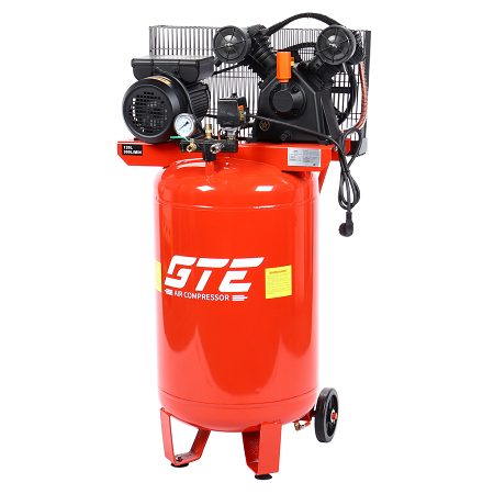 Вертикальный компрессор для экономии места. Воздушный, передвижной, поршневой, масляный, двухцилиндровый. Давление 10 Атм. Производительность 400 л/мин. Мощность 2.2 кВт. Напряжение 220В. Ёмкость ресивера 100 л.