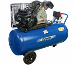 Компрессор воздушный, передвижной, поршневой, масляный, двухцилиндровый. Давление 10 Атм. Производительность 400 л/мин. Мощность 2.2 кВт. Напряжение 220В. Ёмкость ресивера 100 л.