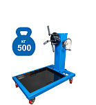 Оснащен редуктором для легкого вращения одной рукой. Редуктор позволяет поворачивать вывешенный двигатель под углом 360°. Надежная сварная конструкция и 4 поворотных колеса обеспечивают маневренность и устойчивость к перевороту. В комплекте поддон для сбора отработанного масла. С 4-мя регулируемыми кронштейнами для удобства вывешивания и обслуживания ДВС легковых и легких грузовиков. Для сборки/разборки моторов V6 и V8. г/п: 500 кг.