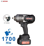 Гарантия 12 мес. Ударный. Профессиональный. До 1700Нм. 3 скорости. Реверс. Квадрат 1/2". Белый светодиод подсветки. Индикатор заряда.  20В. (2х4Ач аккумулятора РАЗМЕР БОЛЬШЕ — ПРОСЛУЖИТ ДОЛЬШЕ!), кейс и зарядное устройство в комплекте. Бесщеточный двигатель. Антивибрационная ручка. Для слесарных работ и шиномонтажа.