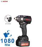 Гарантия 12 мес. Ударный. Профессиональный. До 1080Нм. 3 скорости. Реверс. Квадрат 1/2". Белый светодиод подсветки. Индикатор заряда.  20В. (2х4Ач аккумулятора РАЗМЕР БОЛЬШЕ — ПРОСЛУЖИТ ДОЛЬШЕ!), кейс и зарядное устройство в комплекте. Бесщеточный двигатель. Антивибрационная ручка. Для слесарных работ и шиномонтажа.