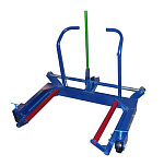 Тележка гидравлическая передвижная для снятия и транспортирования колёс и колёсных пар грузовых автомобилей, максимальная масса поднимаемого груза 750 кг, максимальная высота подъема 400 мм, для колес с наружным диаметром от 800 до 1400 мм. Привод подъема гидравлический, ножной педалью.