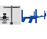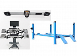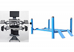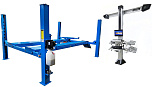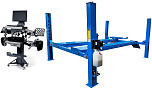 Комплект четырехстоечный подъемник для сход-развала ВСЕХ авто г/п.-4т. с ручной траверсой. Гарантия 2года. В комплекте: анкерные болты 16шт. + противооткатные ограничители 2шт. + противооткатные упоры 2шт. Для любых стендов сход-развал. ВАЖНО!!! ДЛИНА ПЛАТФОРМЫ - 4130мм. — это позволяет прокатывать авто на подъёмнике. Подъём 1850мм, Между колоннами 2775 мм. Усиленный — 960кг металла. +  T 7202 TAB Стенд сход-развал 3D. 2 неподвижные видеокамеры. Напольный. Серия Basic. Для работы на яме или подъемнике. Высокая точность и скорость работы-40 кадров в секунду. База данных 65 000 авто.