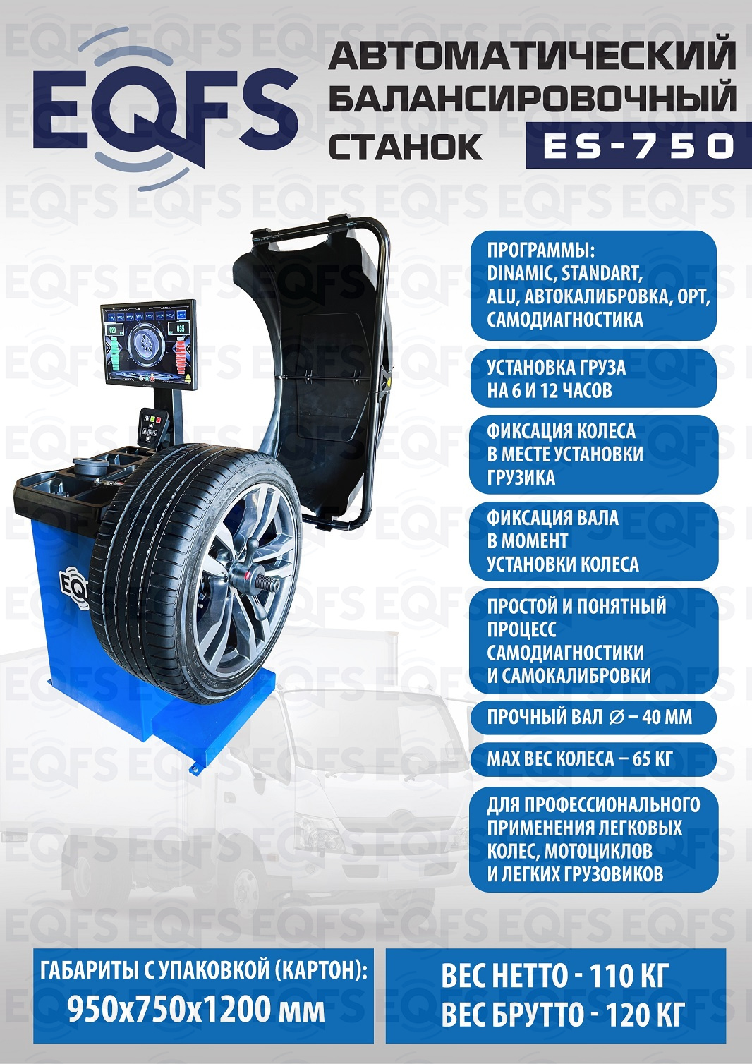 ES-750 Балансировочный станок. Автомат. Для широких колес 315 х R21 от BMW, MB, RANGE ROVER и т.д. Ввод 3-х параметров ( диаметра диска, дистанции и ширины диска), 19-дюймовый LCD монитор с высококачественной 3D-графикой, ультразвуковой датчик ширины. Автодоводчик и лазерная указка места установки грузика. Автоматический ввод 3-х параметров. Для колёс шириной 315мм, Ø до 800мм и весом до 65кг. Программы: статическая и динамическая балансировка, ALU, OPT, SPLIT, калибровка и самодиагностика. LCD монитор 19 дюймов. Вал Ø - 40мм. Для балансировки колёс легковых автомобилей, мотоциклов, лёгких грузовиков и широких колёс. Гарантия 18 мес – наш монтаж, 12 мес – самостоятельная установка.