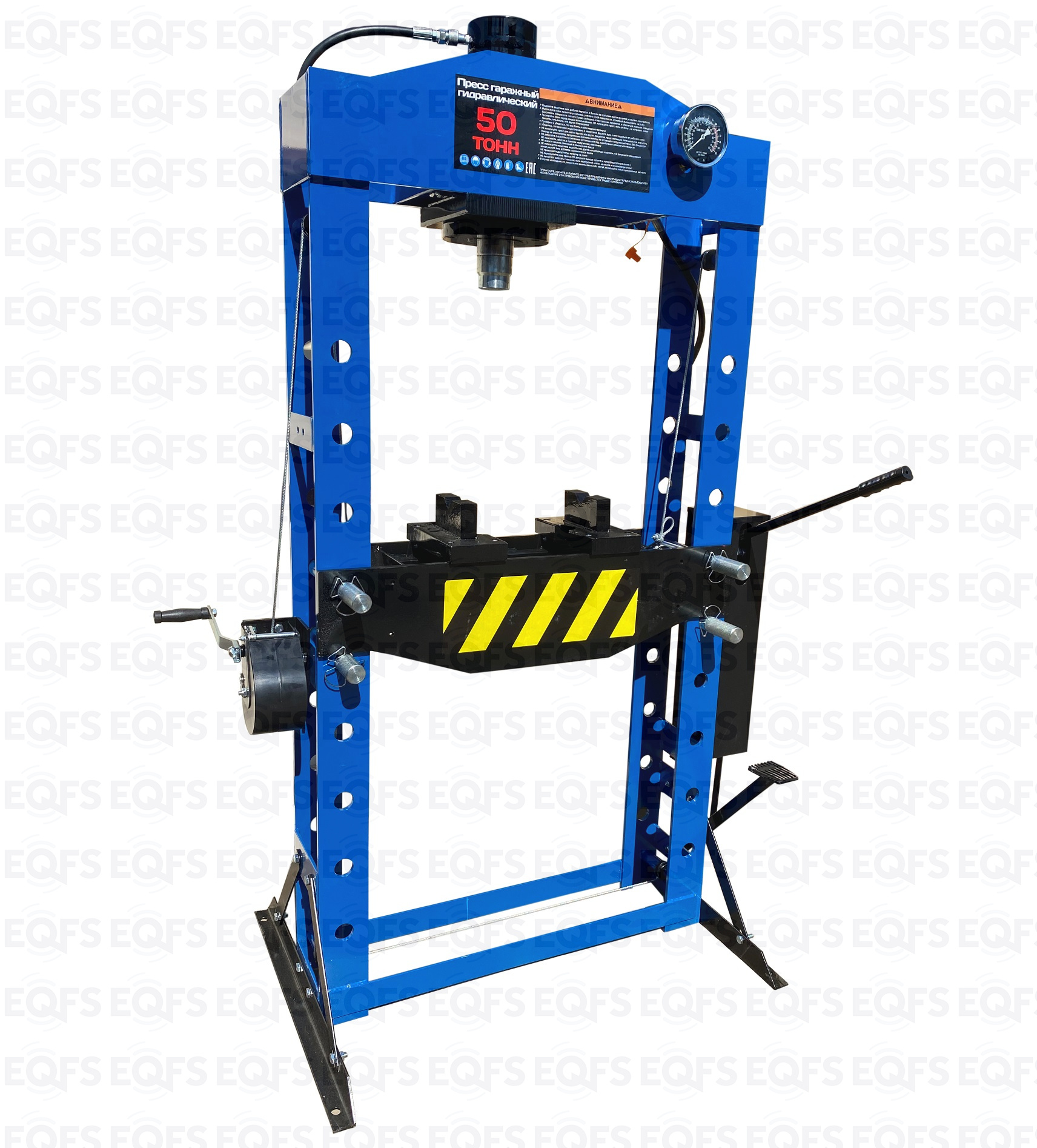 Полностью сварная рама, усилие 50 тонн, управление ручное/ножное, гидроцилиндр с пуансоном перемещается по ширине каретки, клапан защиты от перегрузки, манометр, ручная лебедка. Ход поршня 220 мм. Рабочее окно 730х1290 мм. Рекомендуется для выпрессовки подшипников, деталей машин, втулок и т.п. в автосервисе, гараже и СТО. Цвет синий. Доставка РФ, РБ, Армения, Казахстан, Киргизия.