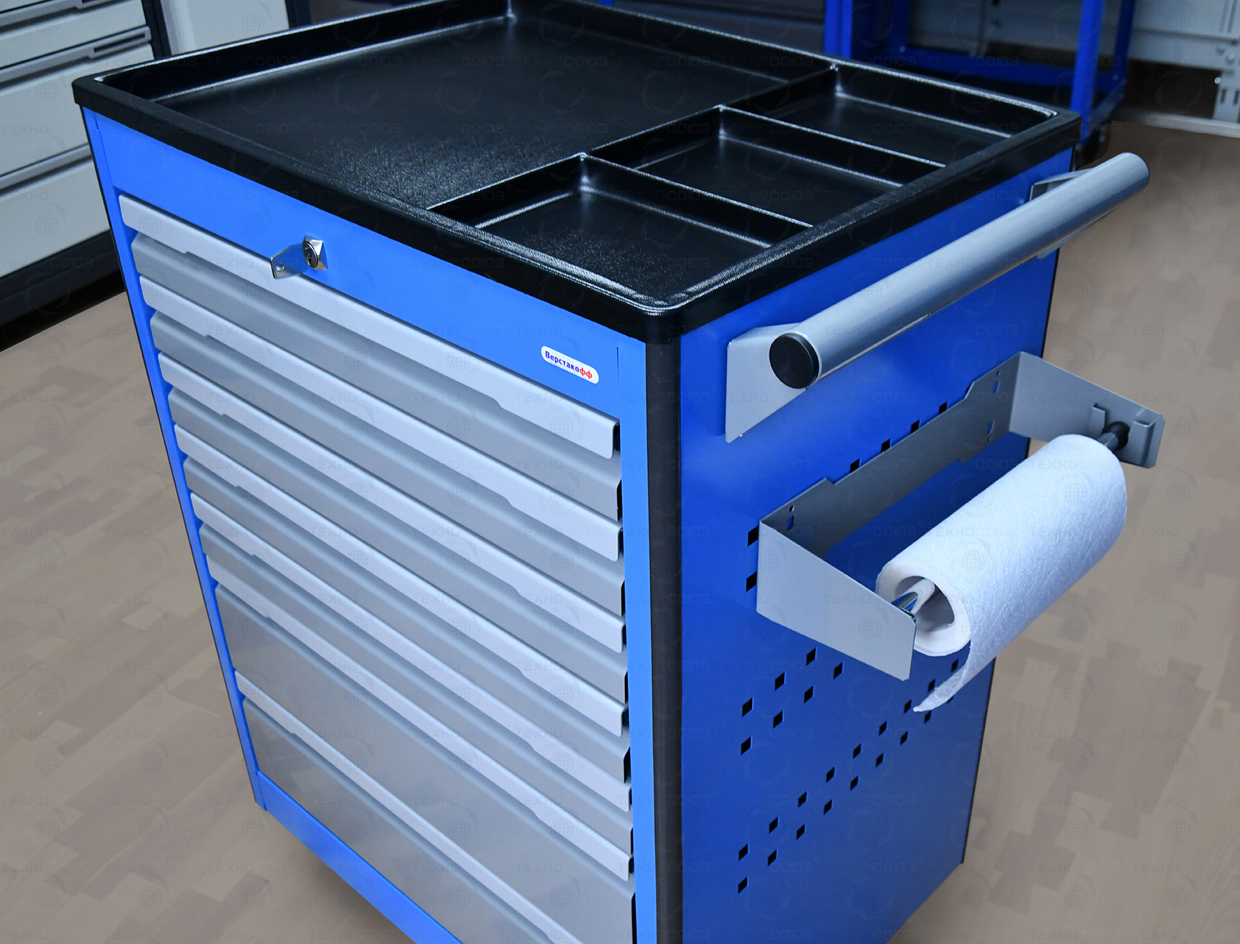 Тележка с 7 выдвижными ящиками предназначена для хранения и транспортировки к рабочему месту инструментов, приборов и другой оснастки, необходимых для работы на сервисных и слесарных участках, а также в цехах заводов и на промышленных предприятиях.