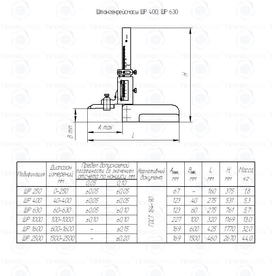 Цена деления 0,05 мм. Диапазон измерения от 60-630 мм. Предназначены для измерения и разметки размеров. Вдоль штанги перемещается рамка, к которой прикреплена разметочная или измерительная ножки. Разметочная ножка оснащена твердым сплавом. Рамка имеет нониус, а для облегчения установки на требуемый размер снабжена микрометрической подачей. Основные детали штангенрейсмаса хромированы. ГОСТ 164-90. Поставляется в двух вариантах с поверкой и без поверки!