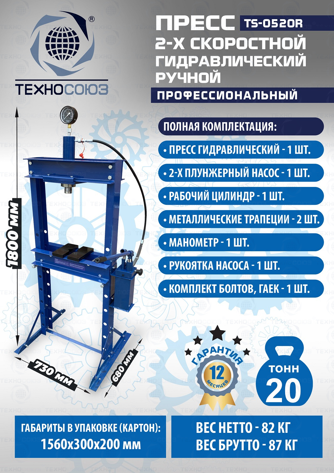 TS-0520R Пресс гидравлический ручной, 20 тонн