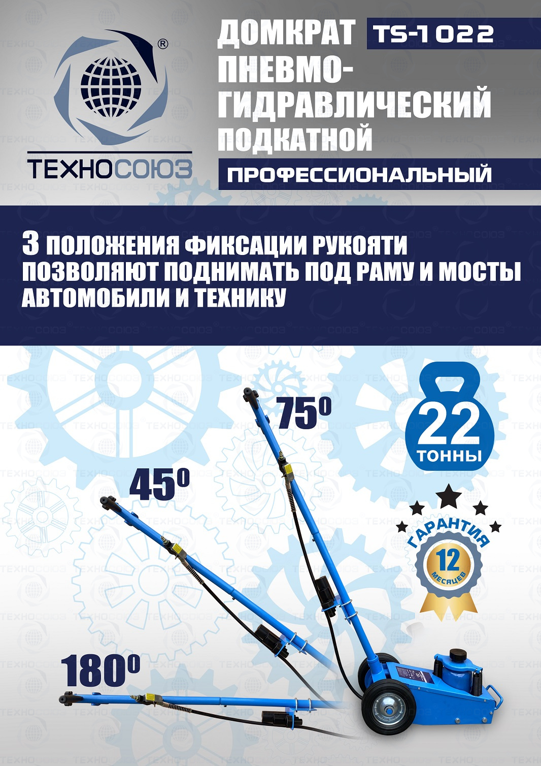 Технические особенности TS-1022 пневмогидравлический подкатной грузовой домкрат: