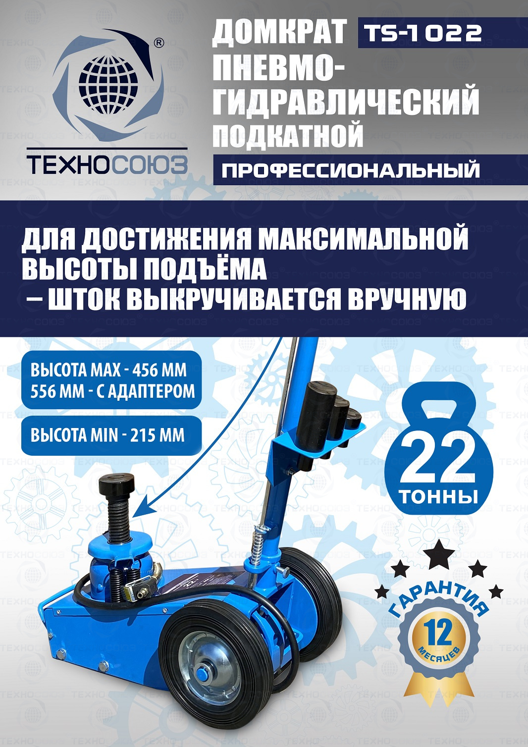 TS-1022 Домкрат пневмогидравлический, 22т